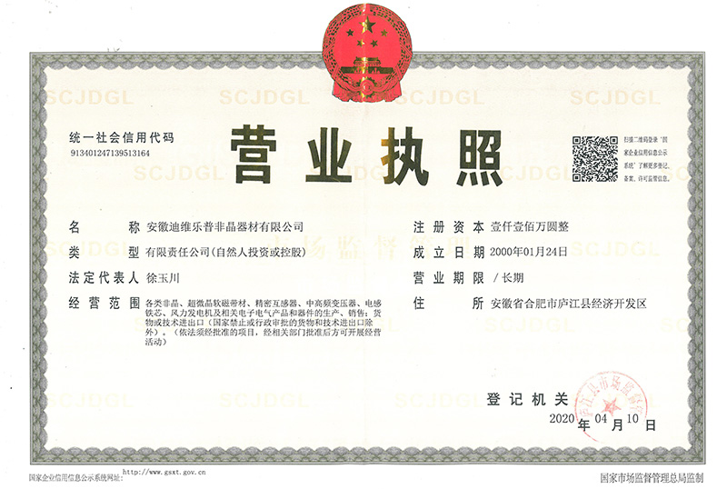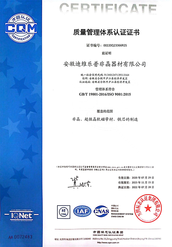 為響應(yīng)國家標(biāo)準(zhǔn)化發(fā)展綱要,推動(dòng)高質(zhì)量發(fā)展,建設(shè)社會(huì)主義現(xiàn)代化國家。 安徽迪維樂普非晶器材有限公司、非晶合金電力互感器材料研究中心;為促進(jìn)標(biāo) 準(zhǔn)化發(fā)展、提升標(biāo)準(zhǔn)化水平;實(shí)現(xiàn)企業(yè)有序發(fā)展、有規(guī)可循;產(chǎn)品質(zhì)量有據(jù)可依、 方便客戶甄別選用,特制定本企業(yè)質(zhì)量標(biāo)準(zhǔn)。